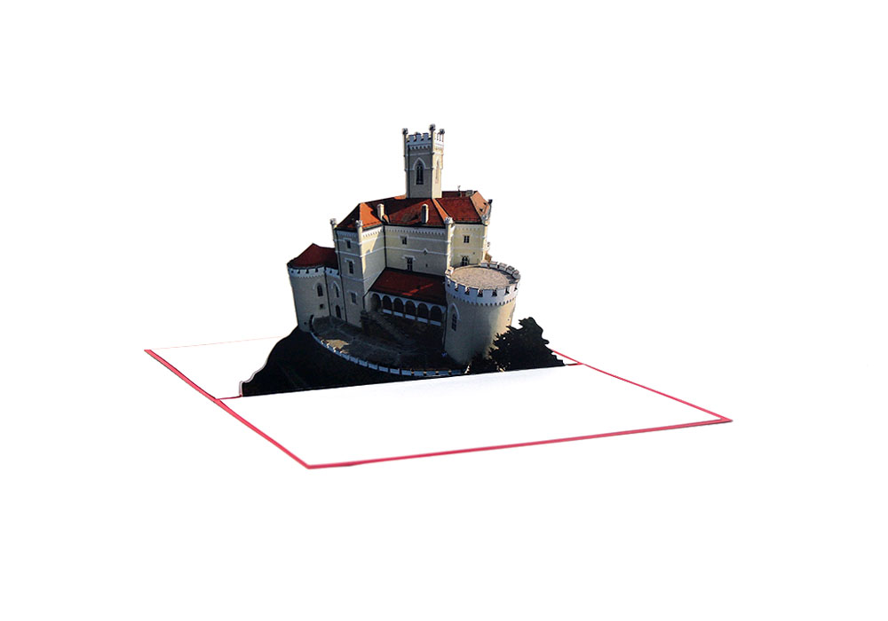 Kreativna 2D čestitka prikazuje dvor Trakošćan, jedan od najatraktivnijih dvoraca u Hrvatskoj koji je smješten u Hrvatskom zagorju. Na crvenoj naslovnici čestitke urezan je naziv Dvor Trakošćan i silueta samog dvorca.