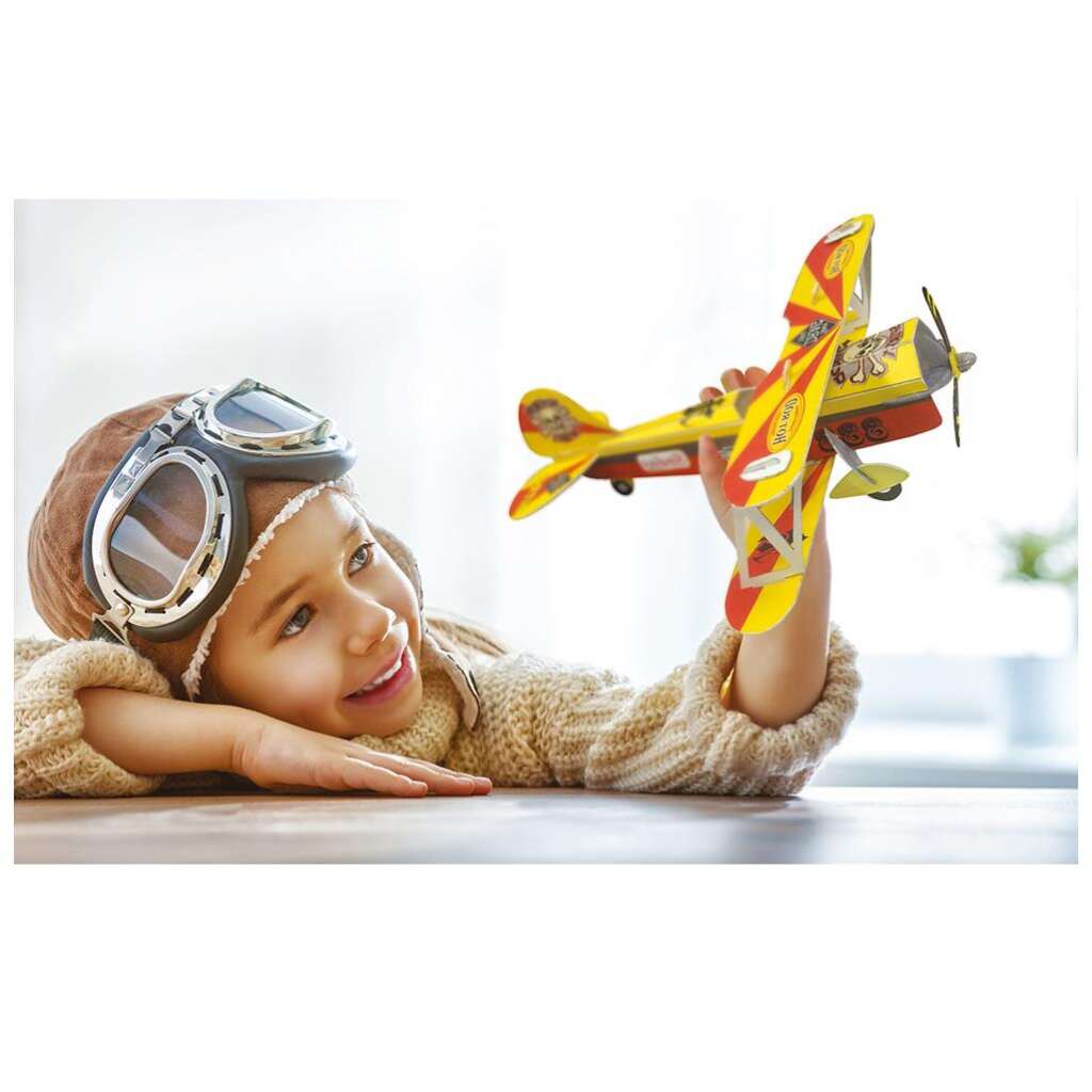 Za sve ljubitelje aviona. Zahvaljujući ovom setu, dijete će moći složiti unaprijed izrezane kartonske dijelove u maketu. Zatim ih mogu slikati i personalizirati pomoću flomastera i naljepnica koje su priložene. razvija logiku i spretnost.
