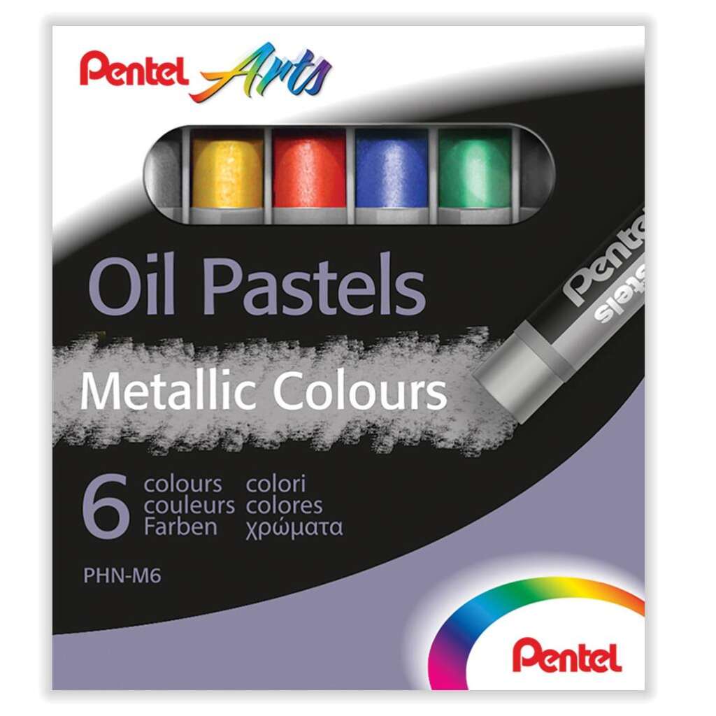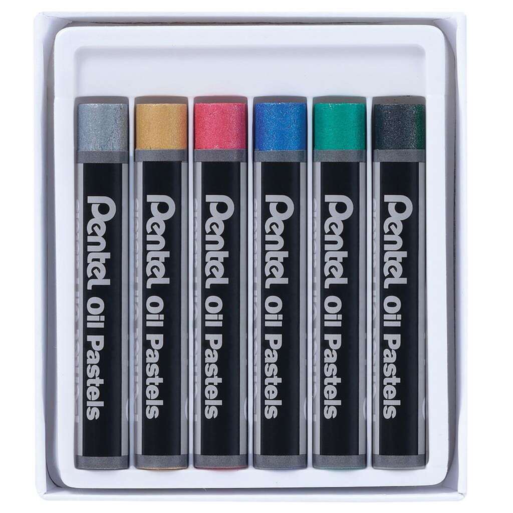 Uljne pastele u 6 metalik boja. Čiste i žive boje koje odlično funkcioniraju na bijelim i crnim podlogama.