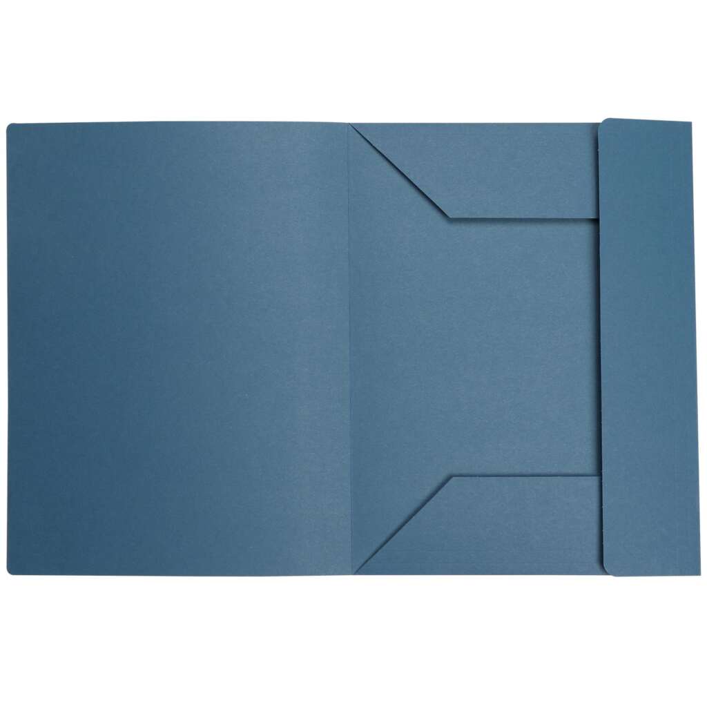 Fascikl od prešpan kartona 285gr/m2; tri klapne; izrađen iz jednog komada; format A4; boja plava; pakiranje 25 kom. šlajfano/150 kom. u kutiji