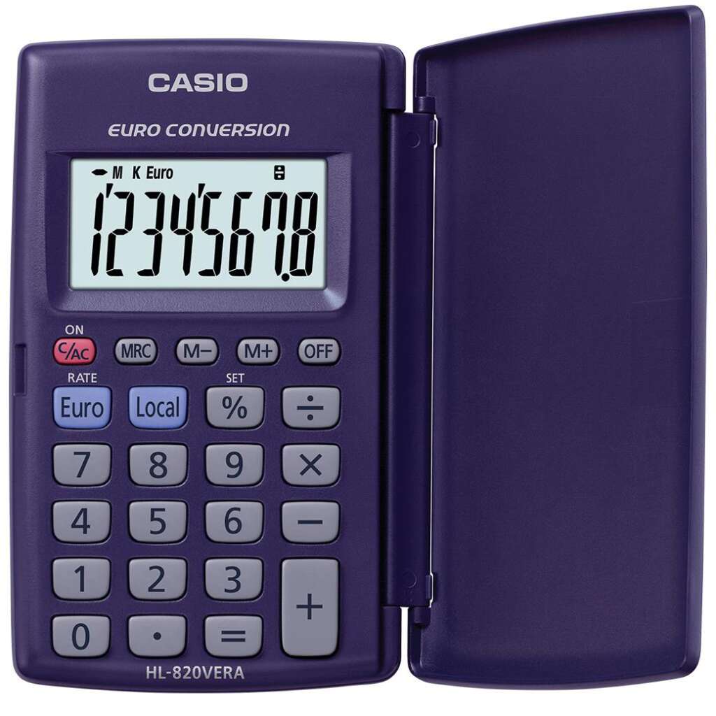 Kalkulator džepni CASIO HL-820 VER S; konverzija tečaja; zaslon 8 mjesta; dimenzija 7.5x127x104mm; težina 45g; izvor napajanja baterija; pakiranje 10/100