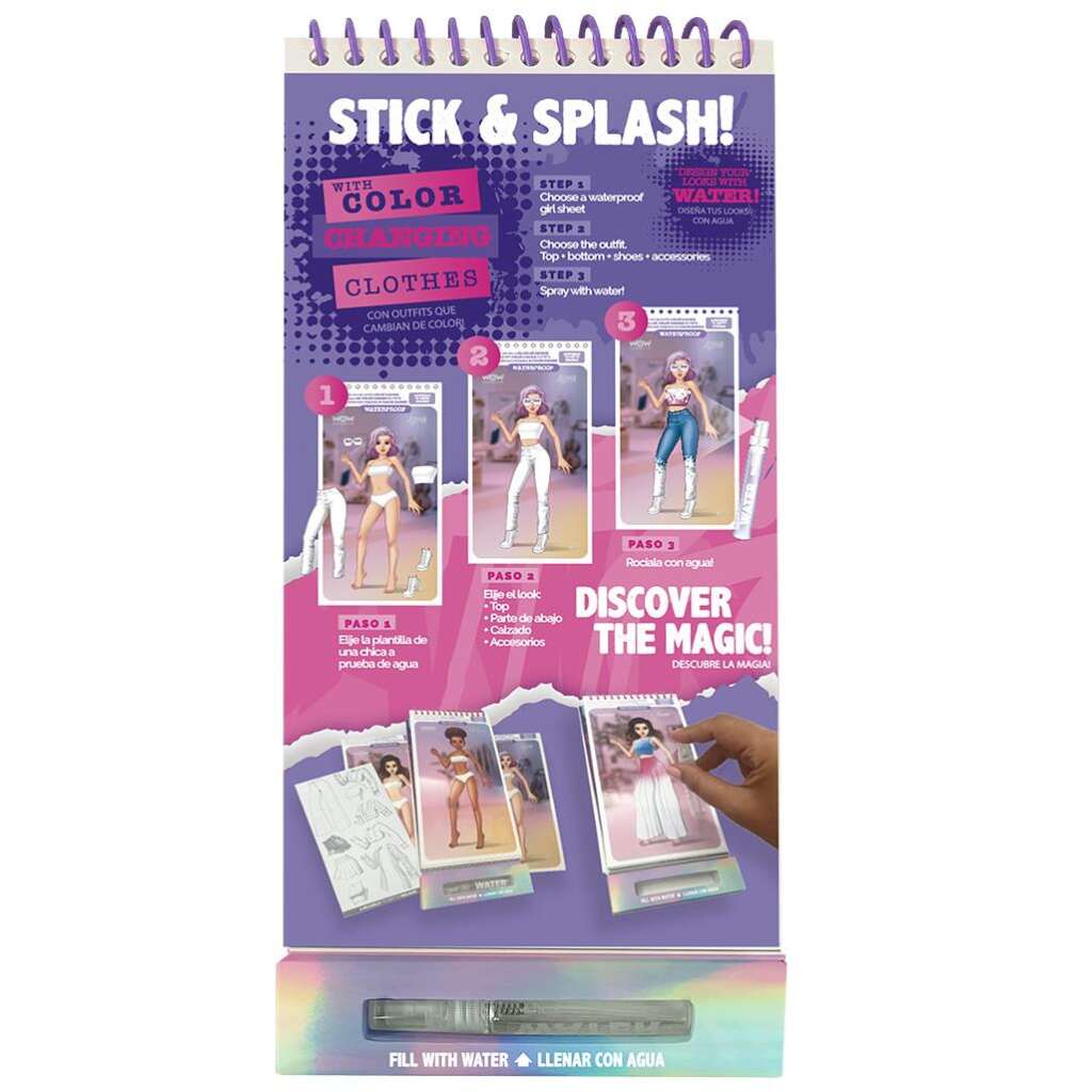 Set sa šablonama WOW cura omogućuje ti da oblačiš i kreiraš po želji. Sadrži više od 80 kombinacija. Jednostvano poprskaj šablone s ovom uz pomoć priložene šprice i gledaj kako odjeća dobiva boju.