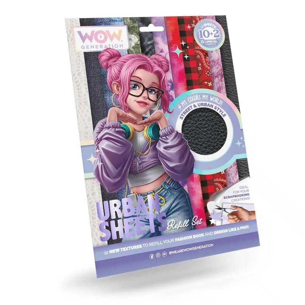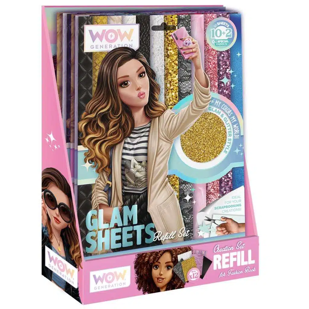 Refilli za stiliziranje za Fashion Book. Set sadrži 10 listova za dizajniranje odjeće, komplet uključuje i 2 posebna lista s teksturom kao što su koža ili svjetlucavi efekt.