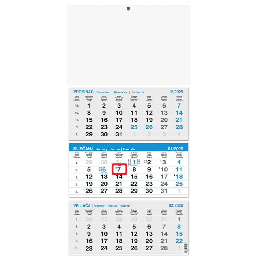 Kalendar trodjelni 3-lista plavi 12L, ljepljen 29,5×42+20, P50 OG 2026