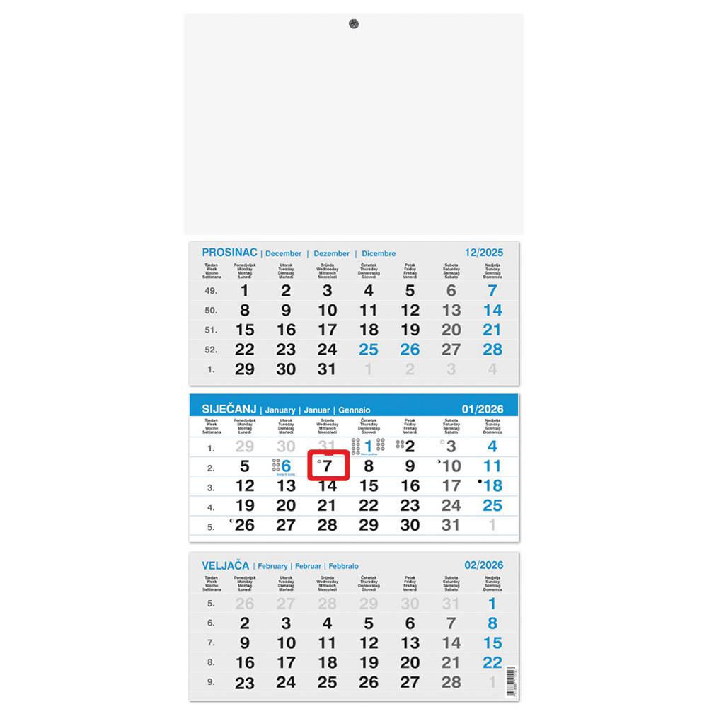 Kalendar trodjelni 3-lista plavi 12L, ljepljen 29,5x42+20, P50 OG 2026 količina